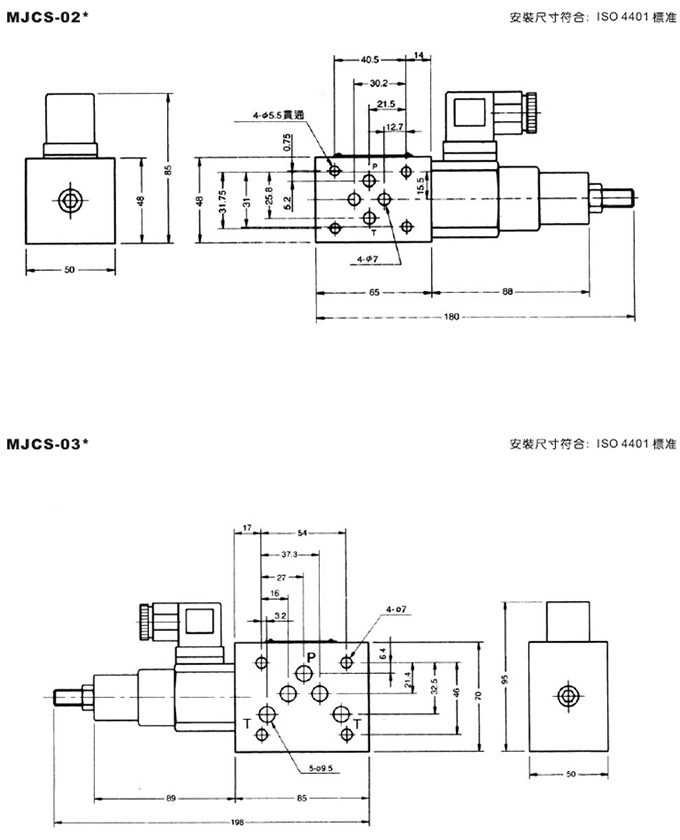 | 疊加式:MJCS | 02: 1/4" 或03: 3/8" 控制孔: P、A、B、W |