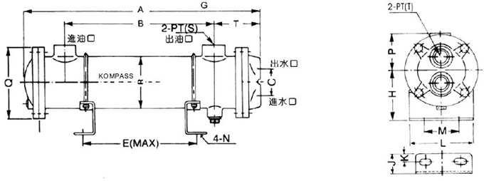 | 滾牙式油冷卻器 | 3:89 mm 4:114 mm 5: 139mm 6: 165mm |