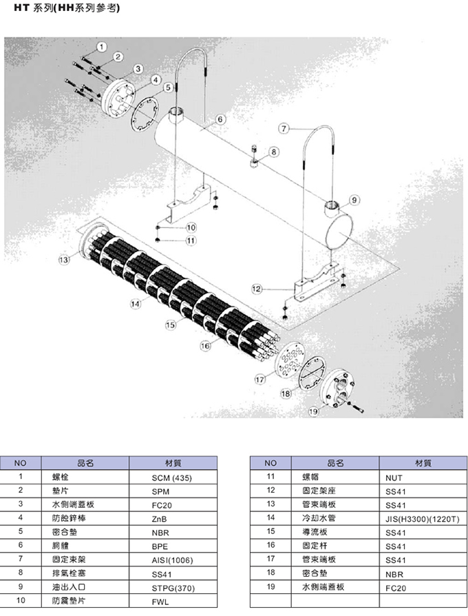 | 油冷卻器 | HH-裸管式 | 請參考尺寸圖 | -:接管型 F:法蘭型 |