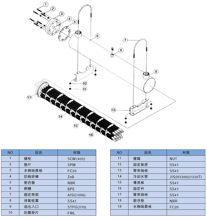 | 系列號碼 | 本體規(guī)格 | 冷卻管外徑 | 散熱面積 | 接續(xù)型式 | 用途 | |