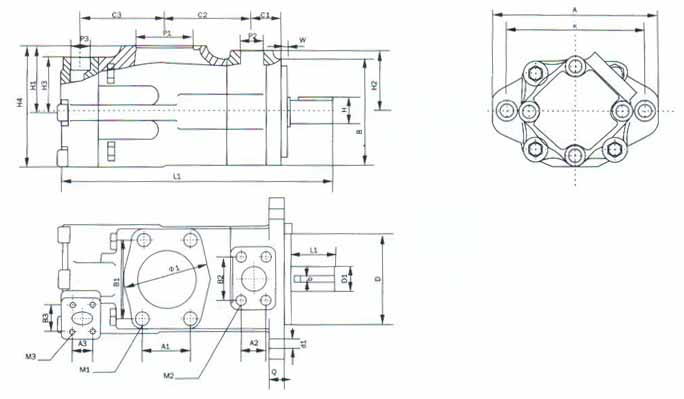 | 泵組 | A1 | A2 | A3 | A | b | B1 | B2 | B3 | B | C1 | C2 | C3 | d1 | D1 | D | H | H1 | |