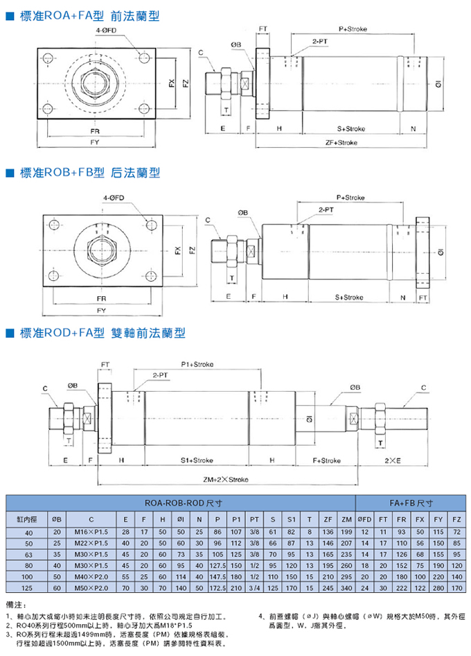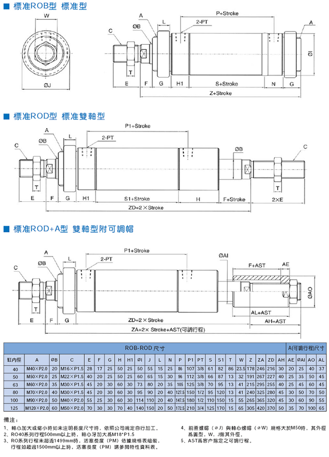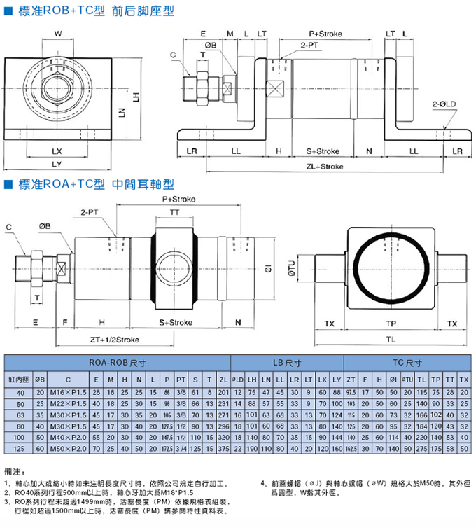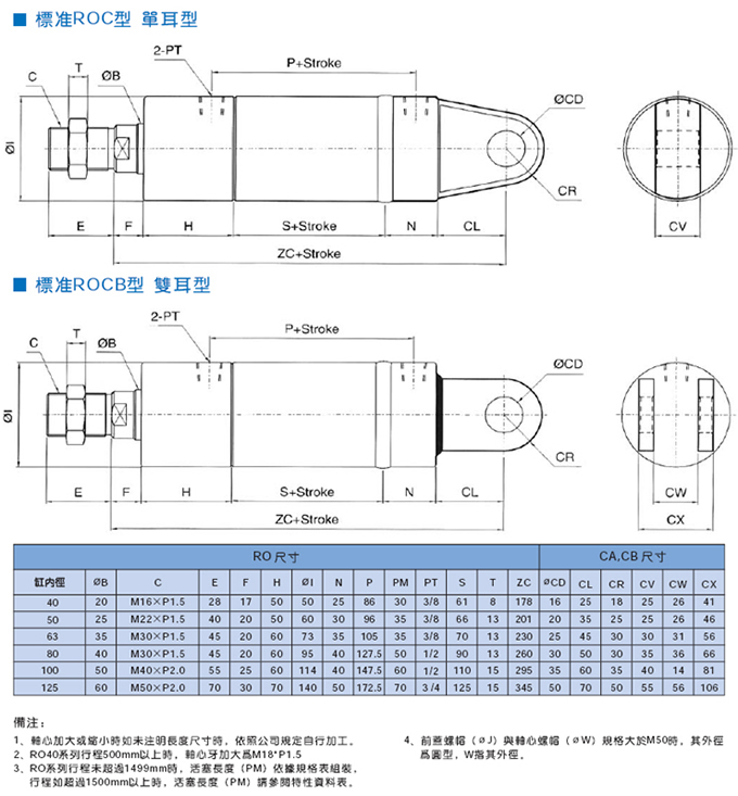| 行程于1501∼2500mm間活塞長度(PM) | 60 | 70 | 70 | 100 | 100 | 120 |