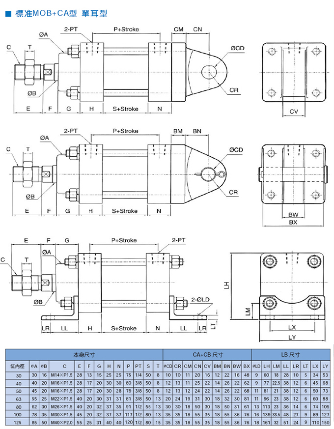 FA:前法蘭型 FB:后法蘭型 LB:腳座型 TC:耳軸型 CA:?jiǎn)味?BR>CB:雙耳型 CBP:CB附PIN CAB:CA+P+CB |