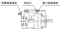 壓力補(bǔ)償型(手動模式):當(dāng)排出壓力達(dá)到壓力補(bǔ)償器的預(yù)設(shè)值時,排出量自動減少以將壓力保持于預(yù)設(shè)壓力 |