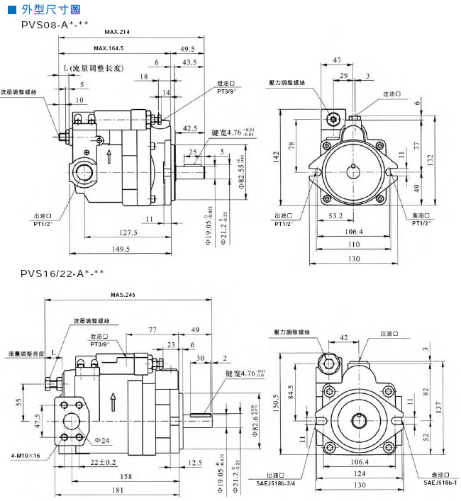| PVS22-A*-** | 22 | 22 | 26.4 | 33 | 39.6 | 21 | 2000 | 500 | 12 |