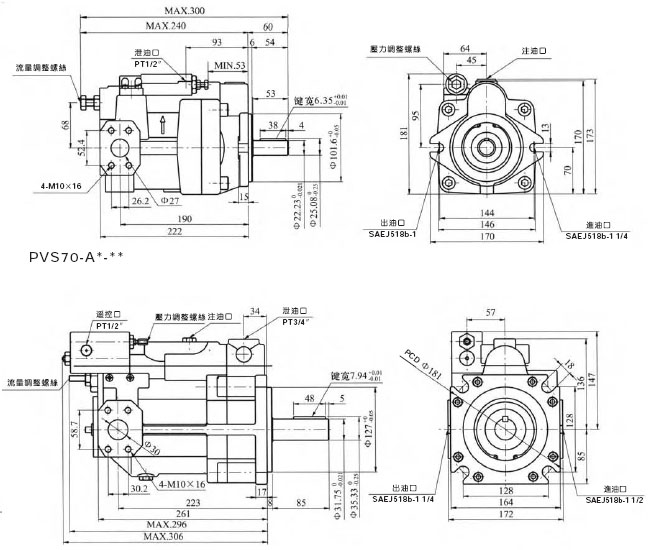 | PVS70-A*-** | 70 | 70 | 84 | 105 | 126 | 21 | 1800 | 500 | 40 |